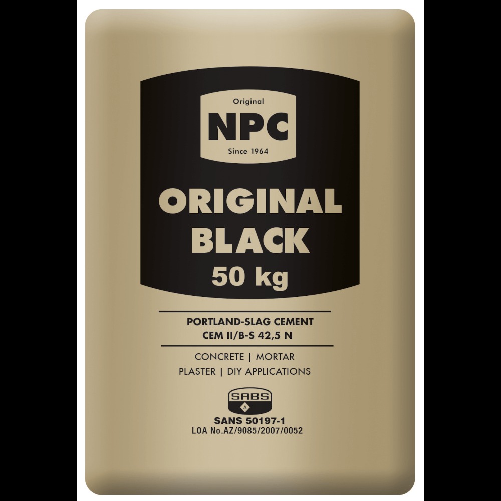 NPC Black Cement (42.5 N) – 50 kg Bag — a premium, all-purpose cement ideal for structural, building, and masonry applications. Trusted for optimizing concrete, mortars, plasters, and screeds, this 42.5 N grade delivers reliable strength and workability. Now available with nationwide delivery across South Africa.