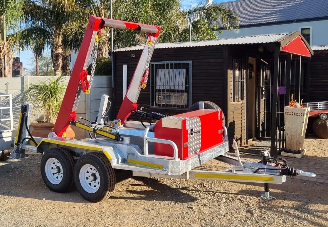 Skip Bin Trailer / Sleepwa—a hydraulic-operated, brand-new trailer tailored for efficient waste transport and container loading. Priced at R 165 000 Excl VAT, this trailer delivers top-tier durability and functionality for your business or farm. Optional 2 m³ galvanized skip bins are available .
